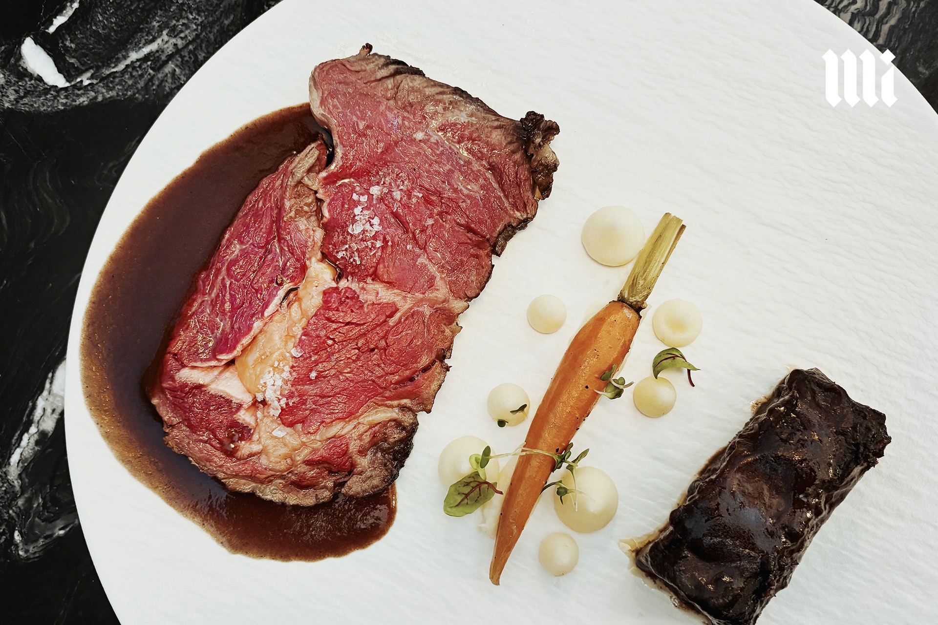 เสิร์ฟมาพร้อมกับแก้มวัวตุ๋นในซอสเข้มข้น ที่นุ่มละลาย พร้อมกับมันฝรั่งบดครีมมี่ที่หอมเนยสดและครีม ช่วยดูดซับซอสและสร้างสมดุลกับรสเข้มของเนื้อ ประกอบด้วยเบบี้แครอทคาราเมลไลซ์ที่หวานหอมและกรอบนอกนุ่มใน เพิ่มสีสันและความสดชื่น