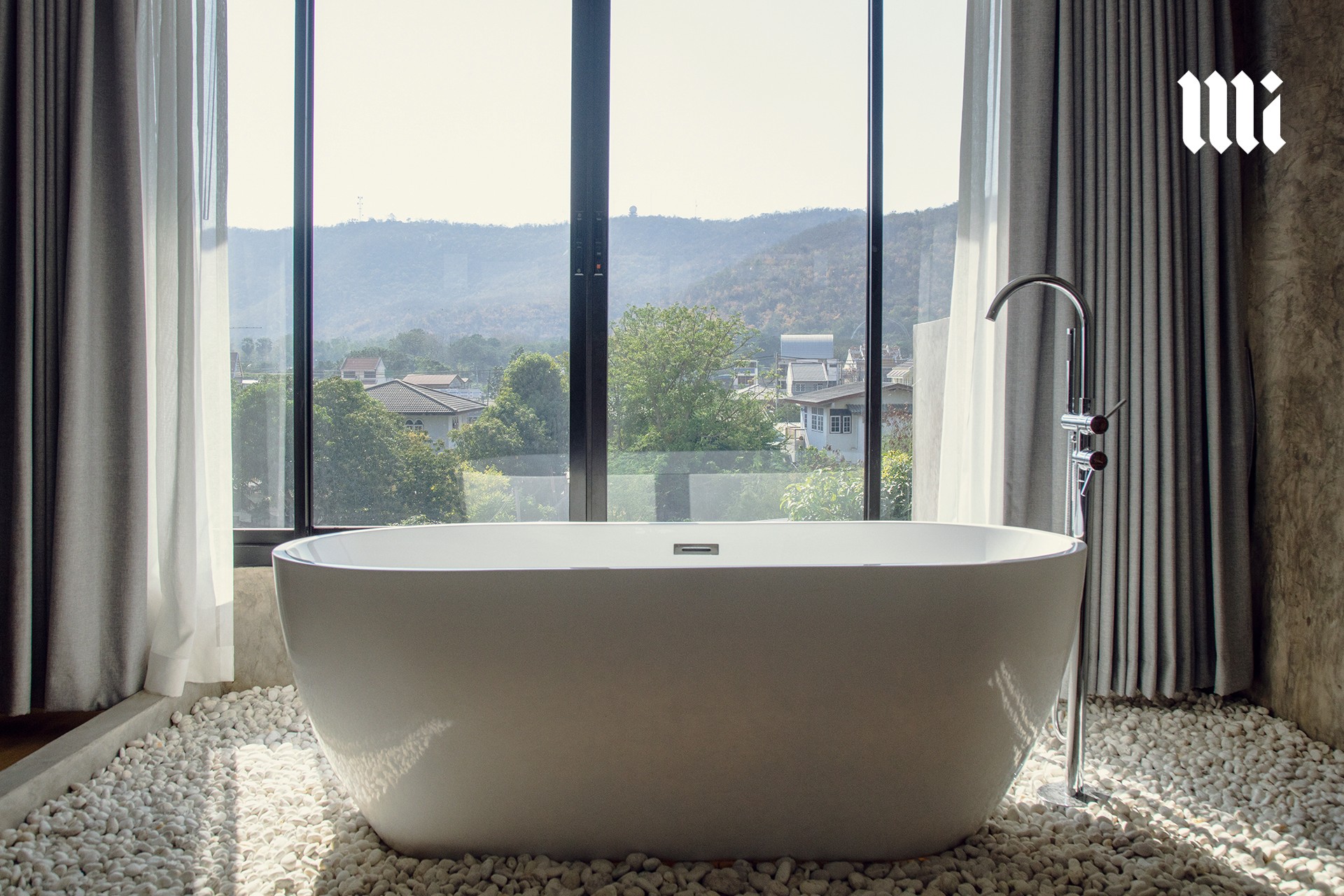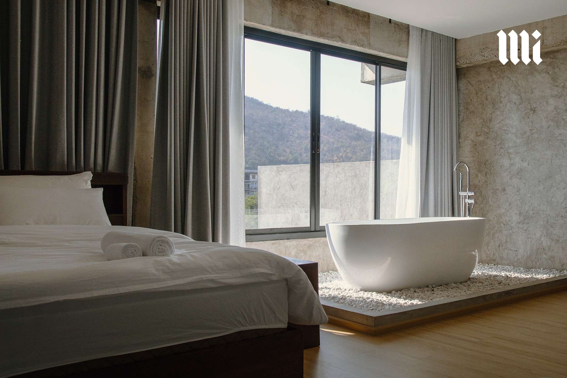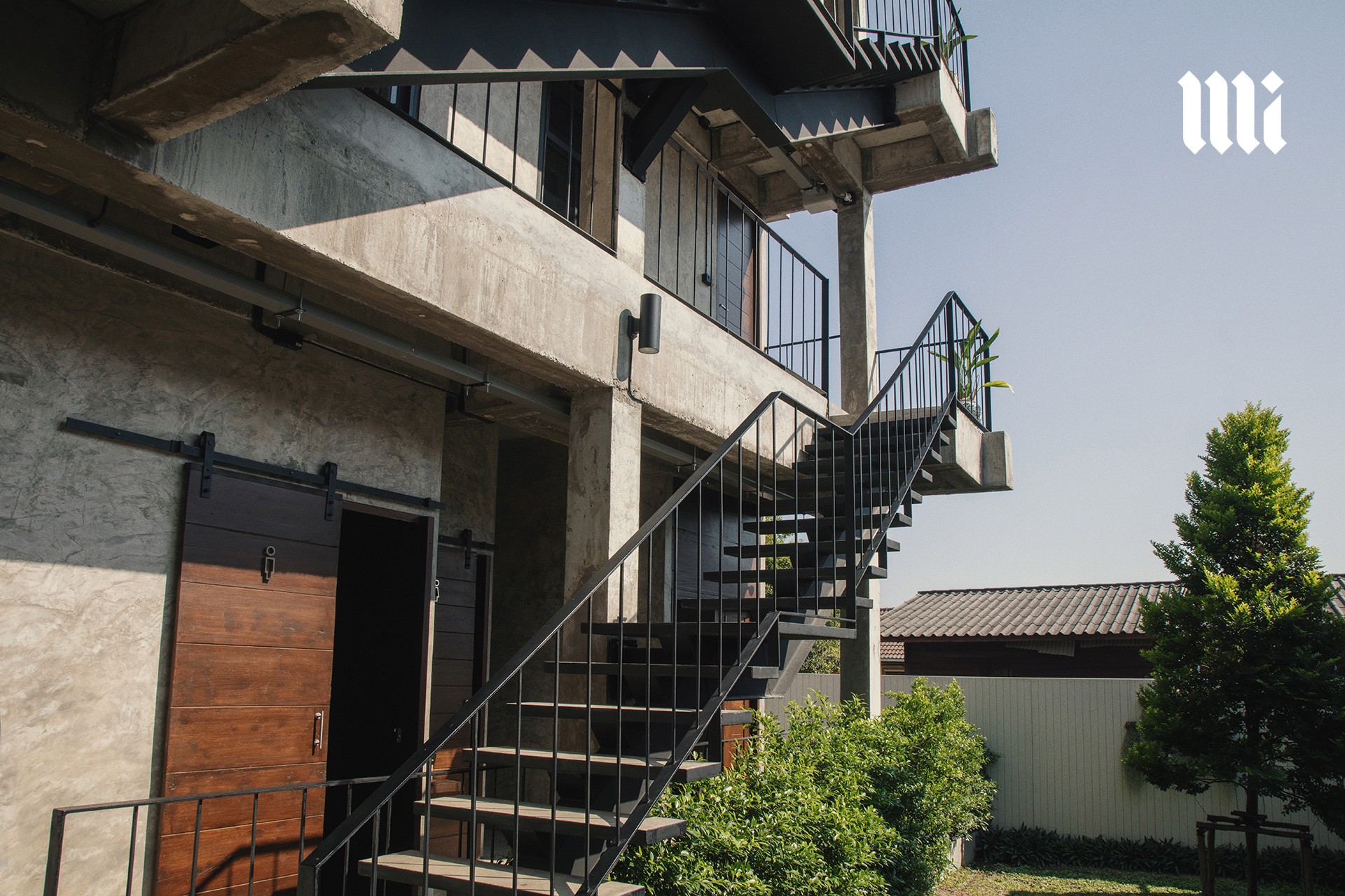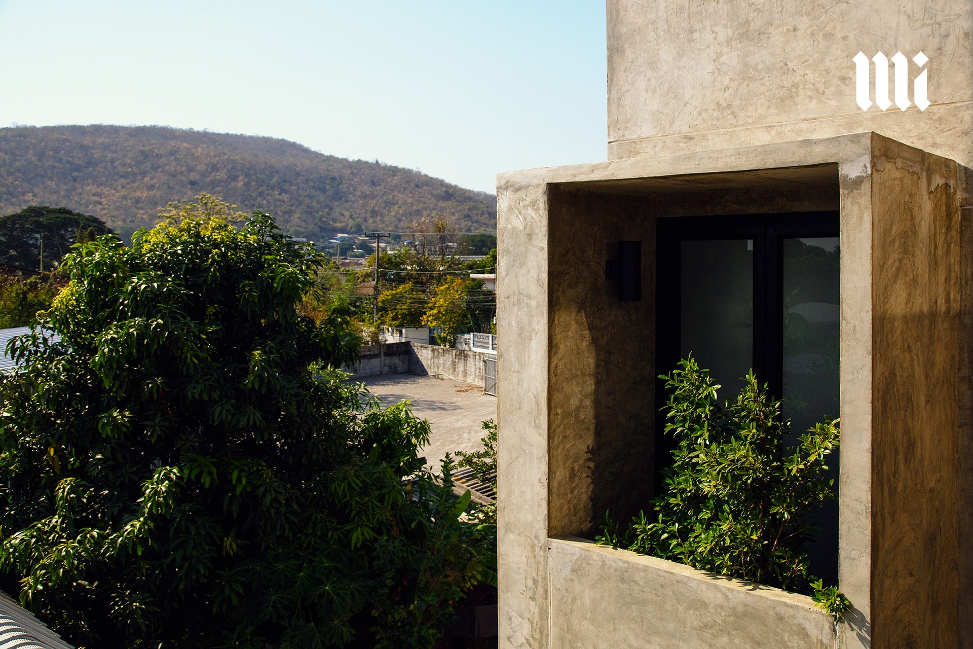 สามห้องนอน บนพื้นที่อาคารสามชั้น ทอดสายตาออกไปเห็นวิวรางรถไฟและวัดตาคลี นอกจากจะบรรยากาศดี ห้องพักยังออกแบบให้มีฟังก์ชั่นในแบบที่ตัวเองชอบ เหมือนกับใส่ความต้องการของผู้พักจริงเอาไว้ในห้องนี้ อย่างห้องใหญ่สุดที่มีอ่างจากุชชี่อยู่กลางห้อง “เพราะแฟนชอบแช่น้ำ” หรือการจัดสรรฟังก์ชั่นภายในห้อง ก็ทำให้ห้องพักนี้เป็นได้ทั้งห้องพักชั่วคราว หรือจะเป็นแบบ Long Stay อยู่ยาวก็อยู่สบาย