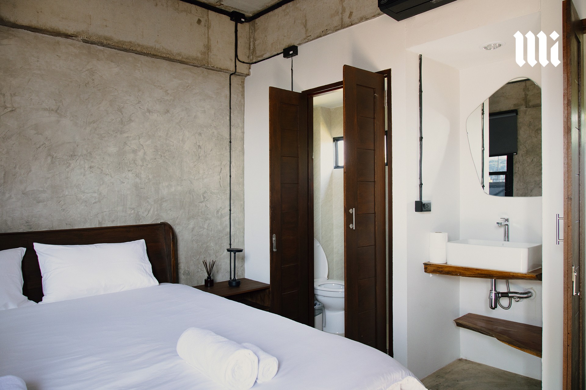 “จริงๆ โรงแรมมีเยอะนะ” เชฟปาร์คเริ่มต้นเล่าในส่วนของโรงแรมที่เกิดขึ้นจากการแก้ปัญหา “แต่แค่รู้สึกว่า ในเมื่อเราจะมีบ้านแล้ว ไหนๆ ก็ต้องทำห้องเผื่อเพื่อนมา เราก็ทำแบบที่เราชอบเลย แล้ววันไหนไม่ได้มีเพื่อนมานอน เราก็ให้คนอื่นมานอน มันก็เป็นรายได้ของเรา มันเริ่มต้นจากการคิดแค่นี้ครับ”