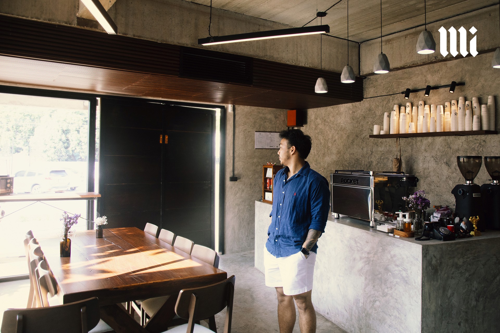 สไตล์ที่ชอบของเชฟปาร์คคือสไตล์ลอฟต์ ในกลิ่นอายวินเทจโมเดิร์น ที่เขาออกแบบเองทั้งหมดในส่วนของงานอินทีเรียร์ โดยได้พ่อตาที่ชอบทำงานไม้เป็นผู้สร้างสรรค์เฟอร์นิเจอร์ไม้ทุกตัวภายในคาเฟ่และโรงแรม รวมถึงประตูไม้บานหมุนบานใหญ่ที่เหมือนเป็นซิกเนเจอร์ของที่นี่ไปแล้ว “ยิ่งไม้สีดำ ต่างจังหวัดไม่ฮิต อันนี้เป็นมะค่าแต้ที่เป็นสีดำที่ไม่มีใครชอบมันเลยราคาถูก แต่โครงแพงมากนะเพราะต้องรับน้ำหนัก” เชฟปาร์คพูดติดตลก