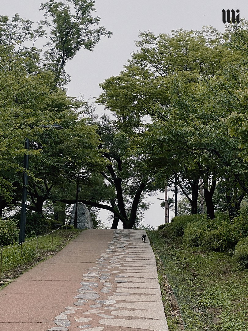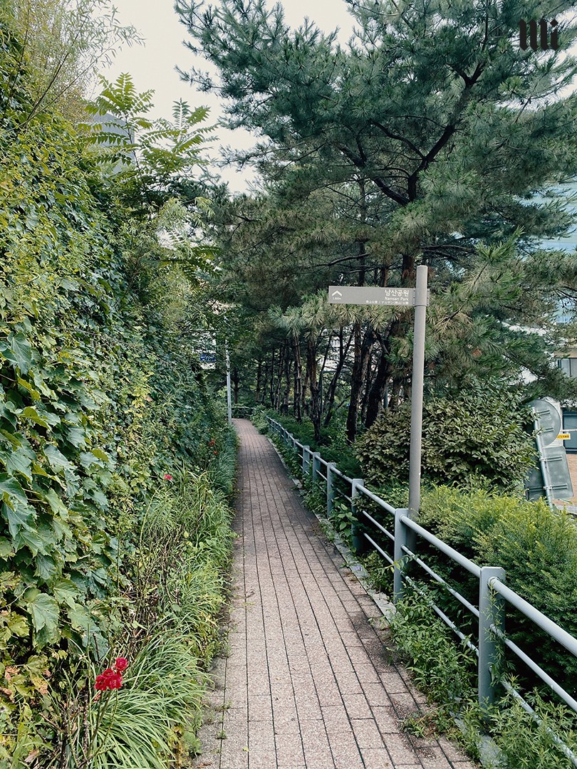เราสตาร์ทจากการชมนิทรรศการและนั่งดื่มกาแฟช่วงสายที่ piknic มิวเซียมสุดชิคที่ชักชวนศิลปินร่วมสมัยระดับนานาชาติผลัดเปลี่ยนมาจัดแสดงผลงานอย่างต่อเนื่อง หลังจากชมงานเรียบร้อยก็ถึงเวลาต้องยืดเส้นยืดสายด้วยการเดินลัดเลาะจนมาถึงทางเข้า Namsan Park ตามป้ายบอก