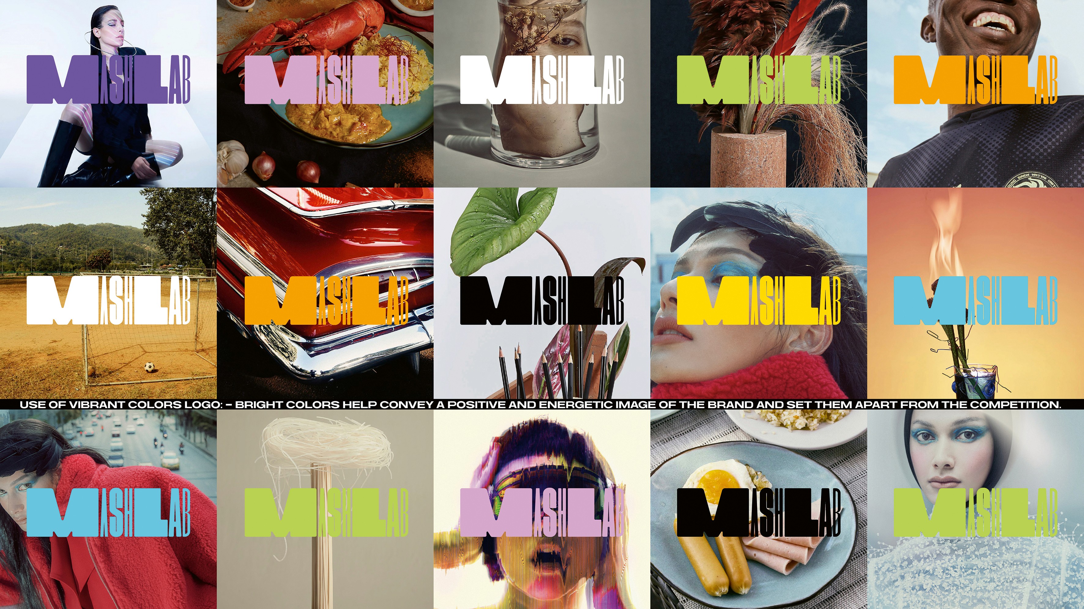 โลโก้ของ Mashlab เรียกว่าเข้ากับมีเดียในยุคปัจจุบันที่ทุกคนมีสื่อดิจิทัลอยู่ในมือ งานโลโก้จึงไม่ได้หยุดแค่ภาพนิ่ง แต่แม็กคิดต่อไปถึงการเป็นโลโก้แบบเคลื่อนไหว และต่อยอดไปใช้ได้อย่างยืดหยุ่นในรูปแบบที่หลากหลาย แต่ยังคงอยู่ภายใต้ร่มของอัตลักษณ์เดียวกัน
