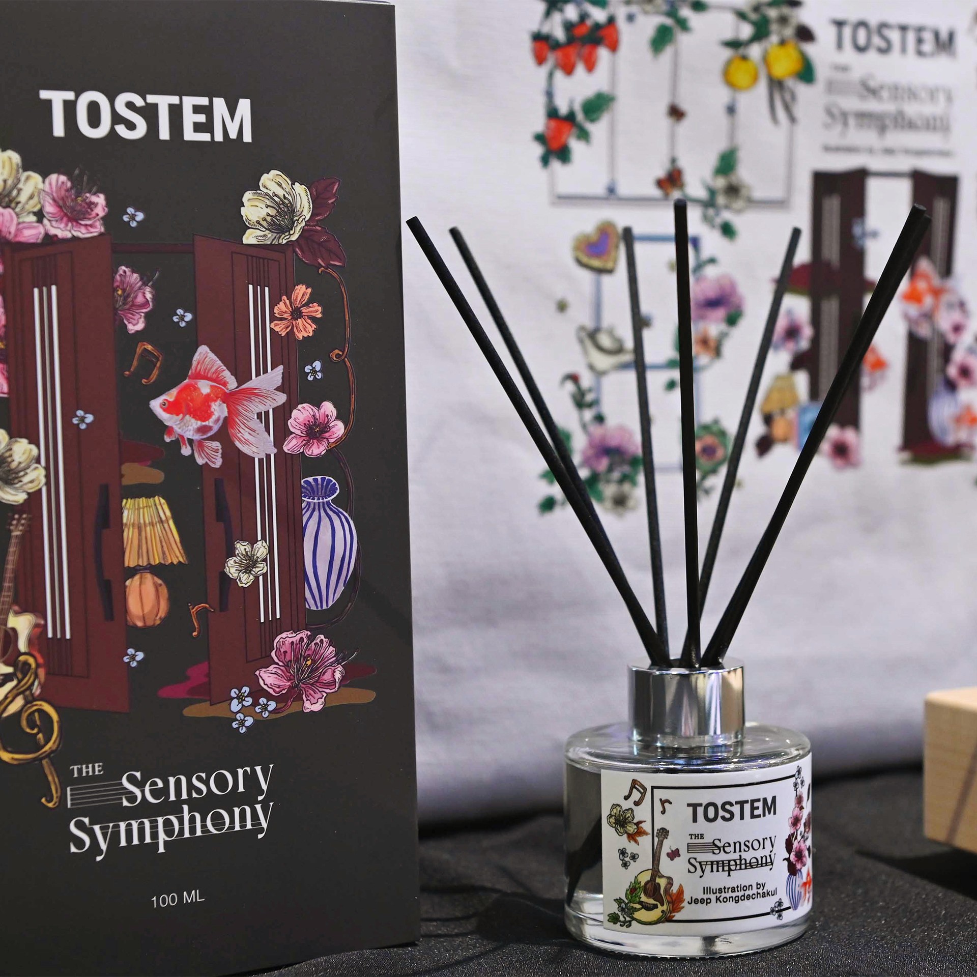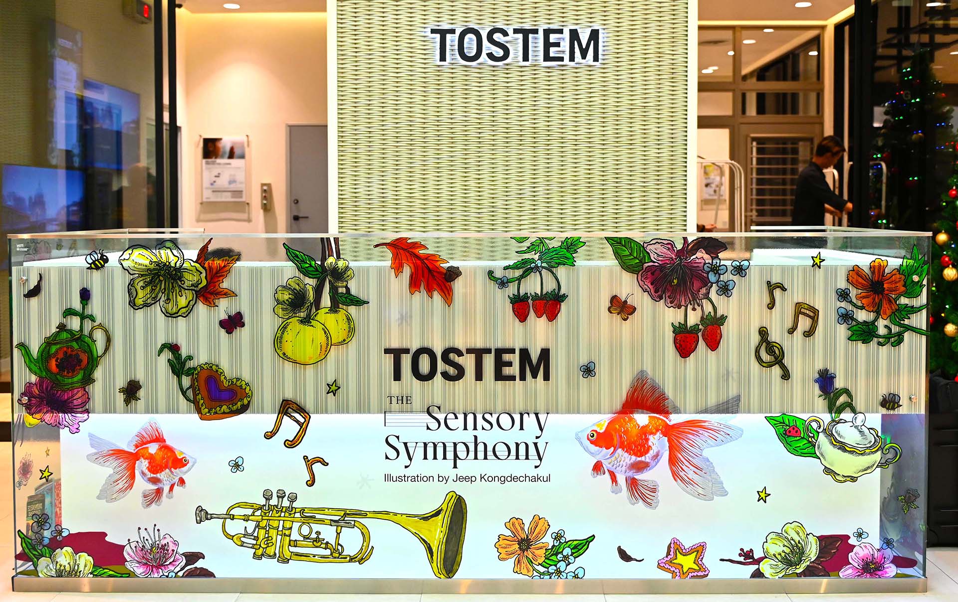 จี๊ป ภาสินี คงเดชะกุล ศิลปินนักวาดภาพประกอบที่มีลายเส้นและเทคนิคอันเป็นเอกลักษณ์เฉพาะตัว กล่าวเสริม สำหรับคอลเลกชัน New Year Gift 2025 และผลงานศิลปะที่ตกแต่งใน TOSTEM Flagship Showroom ภายใต้แคมเปญ “The Sensory Symphony” ส่งต่อความประทับใจผ่านการรับรู้ของประสาทสัมผัสทั้ง 4 เป็นคอลเลกชันที่มีแรงบันดาลใจจากความสวยงามของความสัมพันธ์ระหว่างผลิตภัณฑ์ของ TOSTEM ต่อผู้ใช้งาน กรอบประตูหน้าต่างที่มีดีไซน์สวยงาม ความเรียบและบาง ช่วยทำให้ผู้อยู่อาศัยสัมผัสถึงความเป็นธรรมชาติจากภายนอกได้มากขึ้น โดยนำเสนอการออกแบบที่เล่าเรื่องผ่านคอลเลกชันการรับรู้ของประสาทสัมผัสทั้ง 4 ประกอบไปด้วย